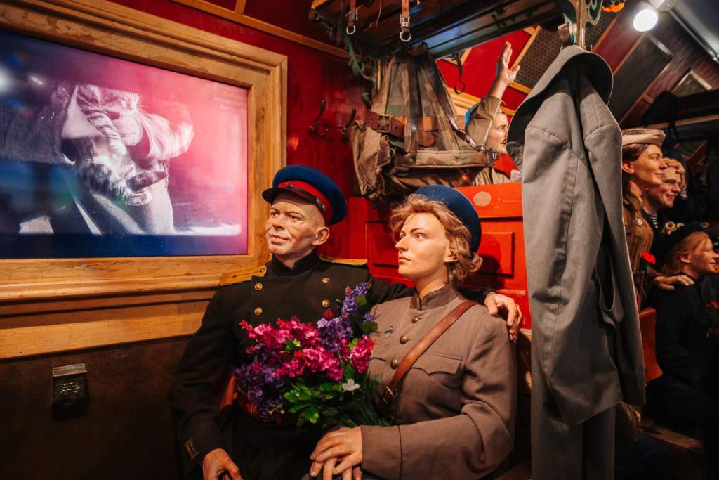 Справочно. «Поезд Победы» — первая в мире интерактивная выставка с максимальным эффектом присутствия, размещенная в движущемся поезде. 10 тематических вагонов посвящены отдельным событиям или вехам Великой Отечественной войны.