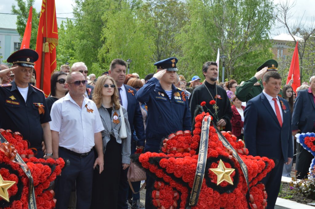 Участники митинга почтили минутой молчания всех погибших на полях сражений, всех, кто приближал в своё время Победу и кого уже нет с нами. В честь защитников был дан троекратный залп.