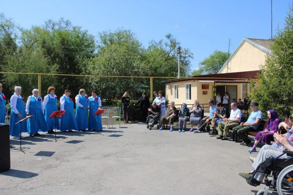 В рамках празднования Дня Победы сотрудниками Центра социального обслуживания и слушателями факультета вокального и хорового исполнения «Серебряные голоса» для получателей социально-реабилитационного отделения ст. Кутейниковской проведен концерт «Победный май!».