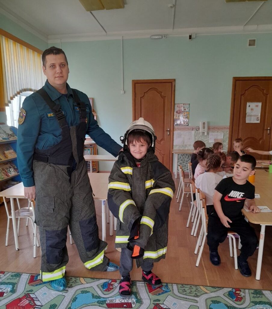 Андрей Александрович открыл перед детьми мир профессии пожарного. Он рассказал о смелости и самоотверженности, которые необходимы для этой важной работы, и продемонстрировал форму пожарного. Ребята с восторгом примеряли каски и куртки, чувствуя себя настоящими героями.