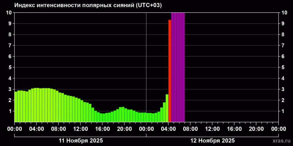 Мощная магнитная буря планетарного масштаба обрушилась 12 ноября. Её сила достигла высшего уровня G5.