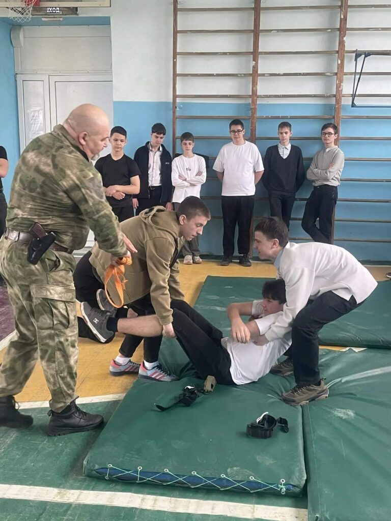 При поддержке педагога-психолога Бояренко О.А. в Зимовниковской средней общеобразовательной школе №1 прошло занятие для учащихся 8-го класса по тактической медицине с участием пенсионера ОВД, участника боевых действий, есаула Зимовниковского юрта Перепелицына Александра Тимофеевича.